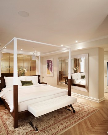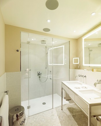 - Stereo sound system in room and bathroom