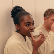 90°C, the scent of wood, silence. The Finnish sauna at Sans Souci is generously designed across three levels, offering space to retreat. Whether quiet warmth or an invigorating infusion, each ritual unfolds calmly and entirely at your own pace.