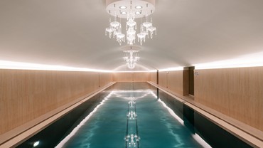 Yes, it is the longest hotel pool in the city. Above all, however, it is a pool designed for real swimming. Twenty metres of space, reduced design and a tranquil light setting create an atmosphere of calm. Crystal chandeliers by Viabizzuno add subtle elegance. A place for early laps, concentrated training or simply letting movement reset your thoughts.